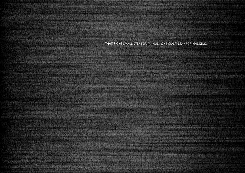 Created for the 40th anniversary of the 1969 Moon landing, the entire Apollo 11 transcript creates typographic static, whilst the infamous phrase cuts through all the noise.