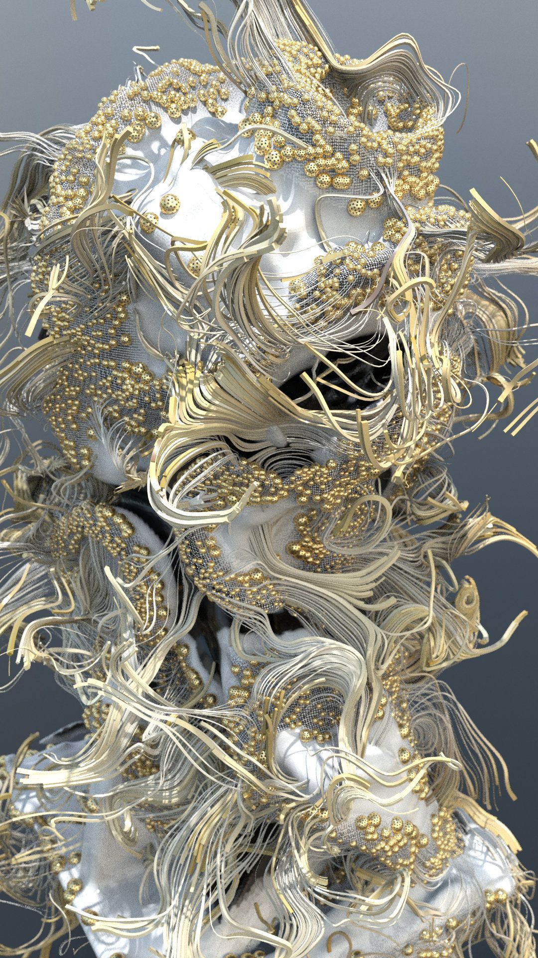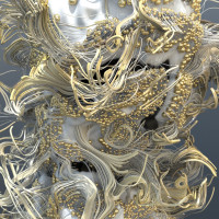Translated into a new form using Antonio Vivaldiās Four Seasons (Spring) that describes freshness and beauty, the bust of Aphrodite is an interrelation between an extraordinary bouquet of delicate white petals and shiny golden spheres in largo; and a sonic visualization resembling a sea foam in allegro. Shadows of the Baroque are combined with the latest generative techniques using code and a procedural computational system. Different tempos are exchanged within the work that captures the basis of the Ritornello form used in Spring (of the Four Seasons).