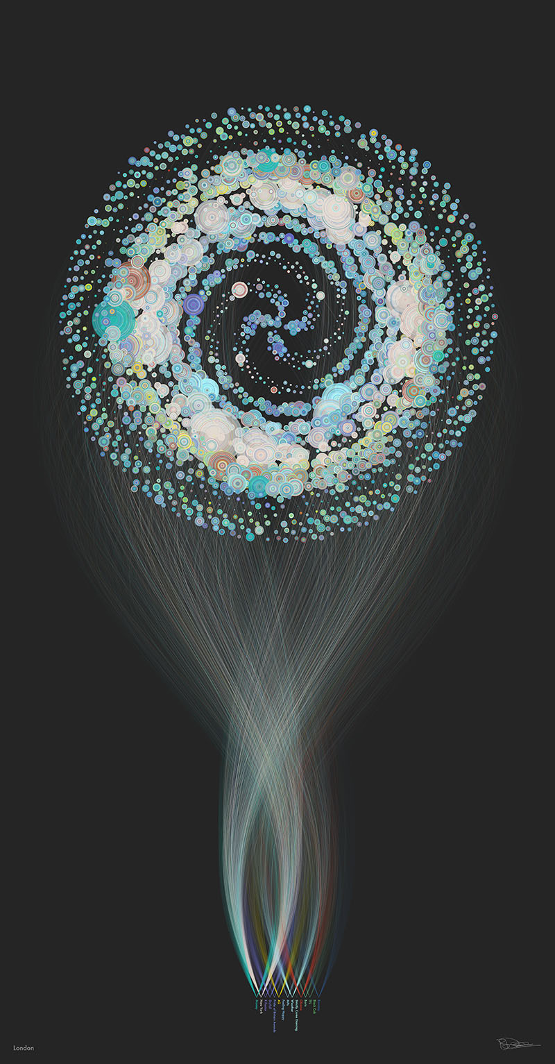 Even though each piece uses the same system to generate the images, each one is unique — from a density of data point of view but also things people were talking about.