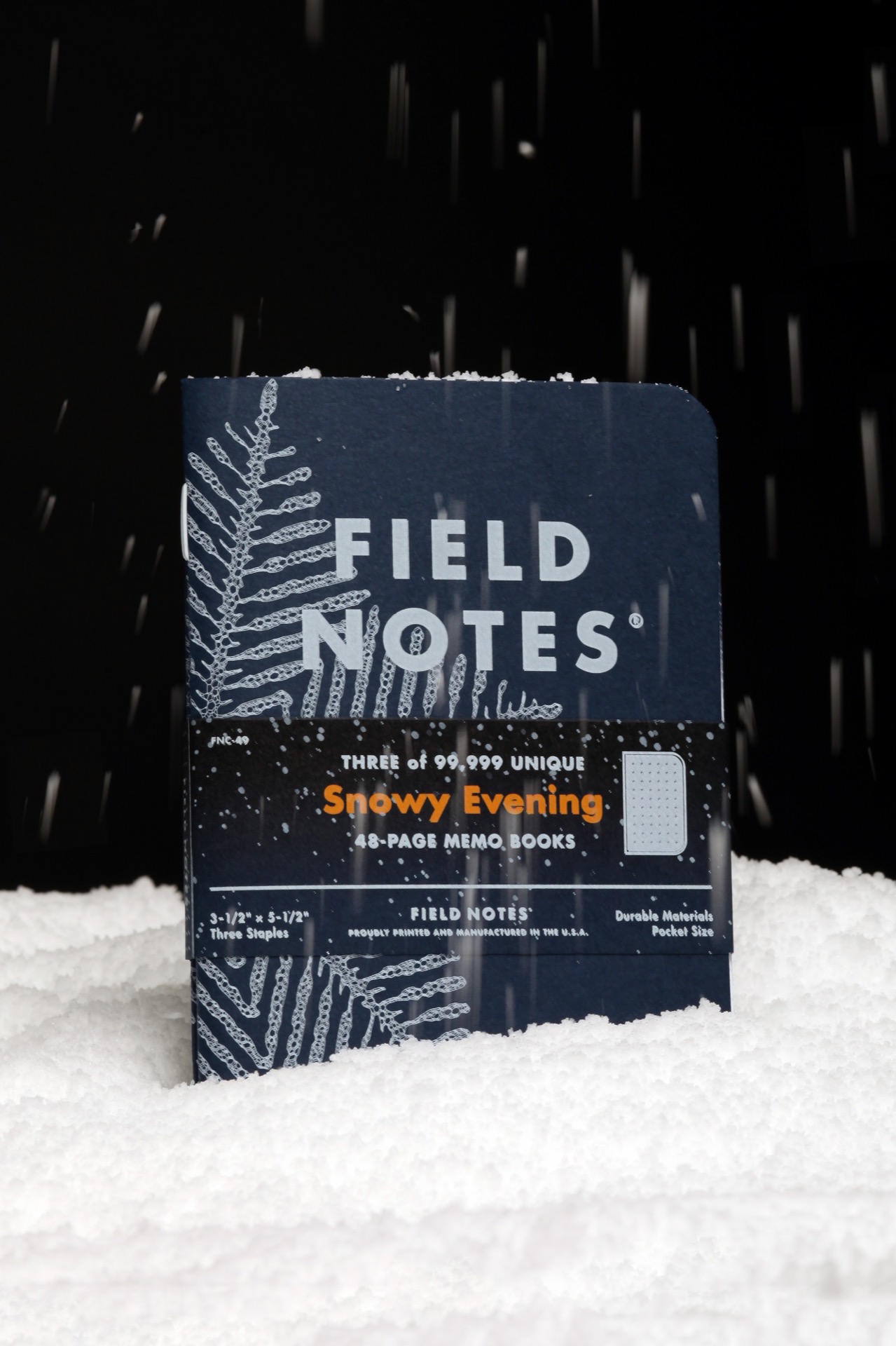 Each of the 99,999 covers features a unique snowflake made using a generative process and a unique edition number – the first time Field Notes has ever done this, and the first time they've ever done a cover using a generative design process.