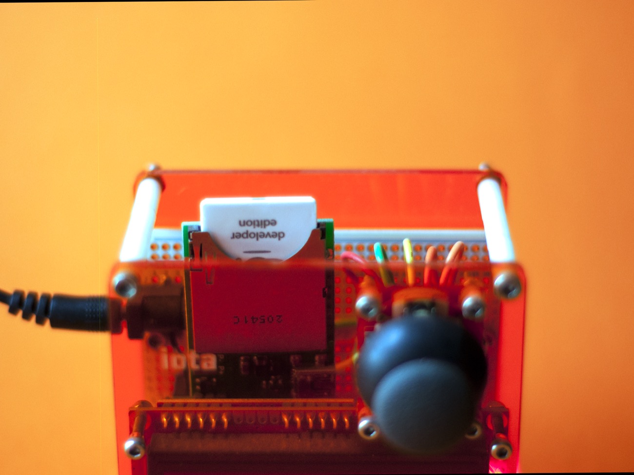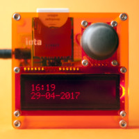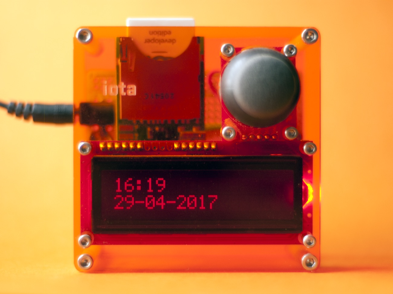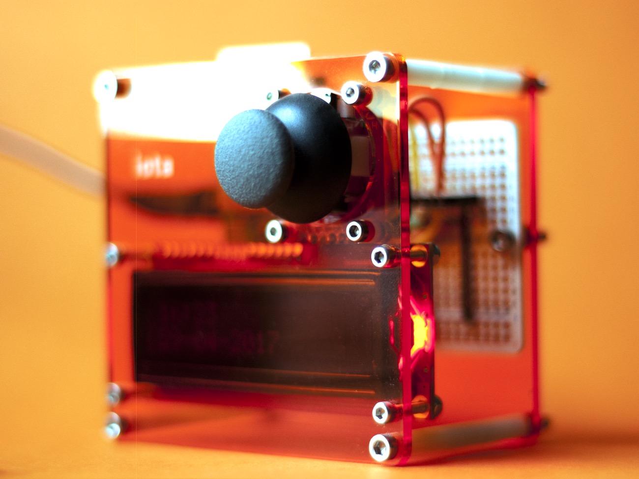 iota (model one) is an Internet connected display that has its function defined by the code it receives over WiFi. The hardware is made up of a 16x2 LCD display together with a joystick control and integrated push button - much like you'd find on a PS2.