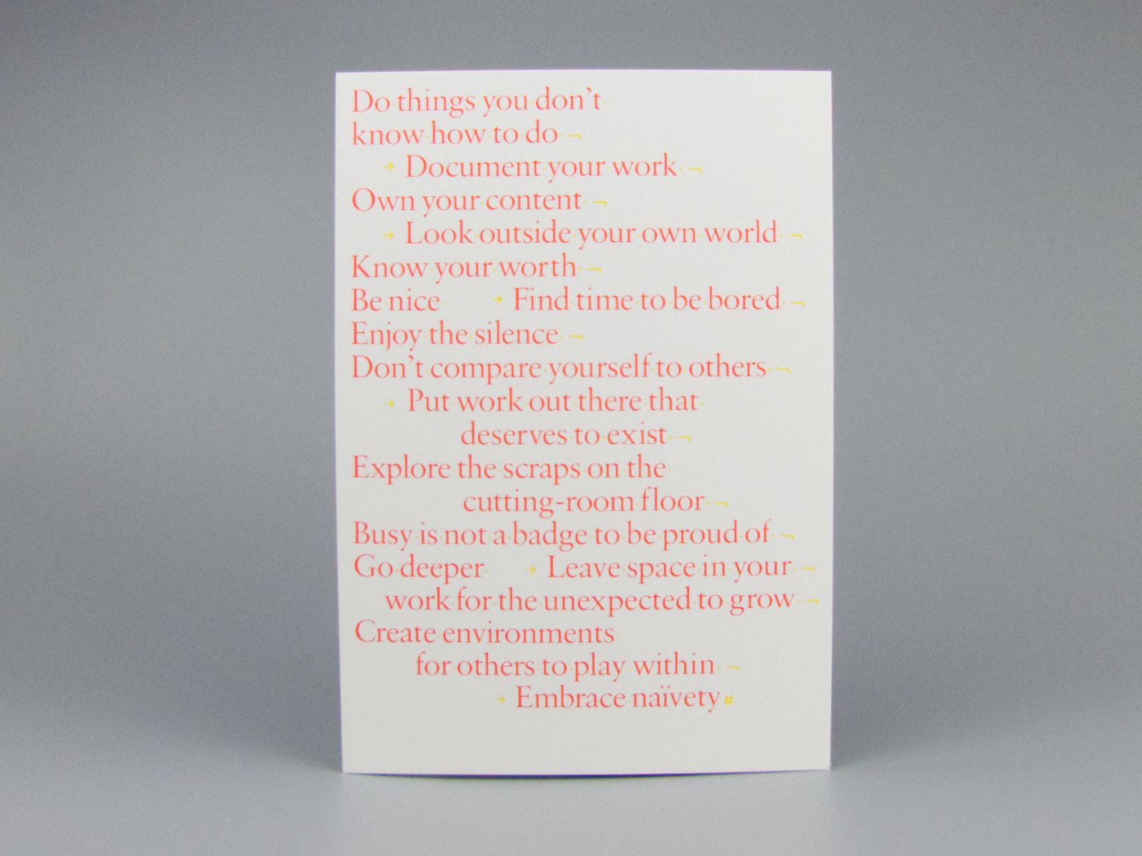 A spin-off from the original Notes to Myself, Manifesto for Myself is a limited edition A5, two-colour screen print featuring some of my personal thoughts on creativity I've jotted down over the years.