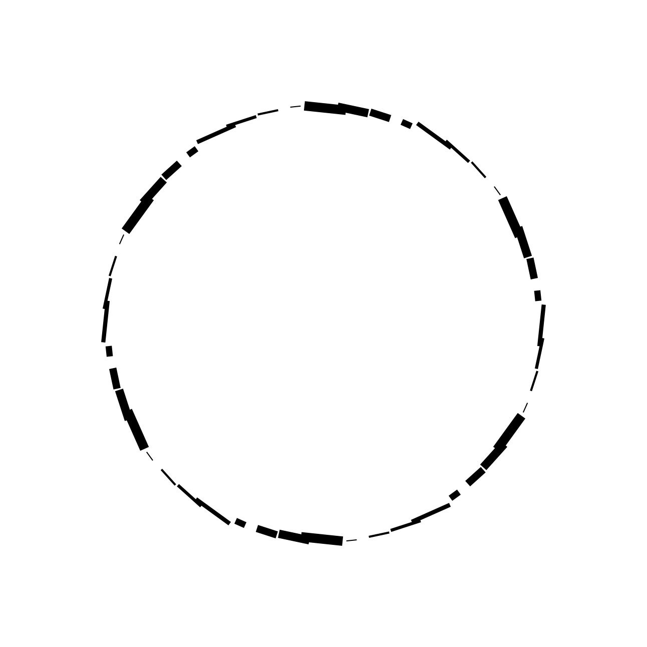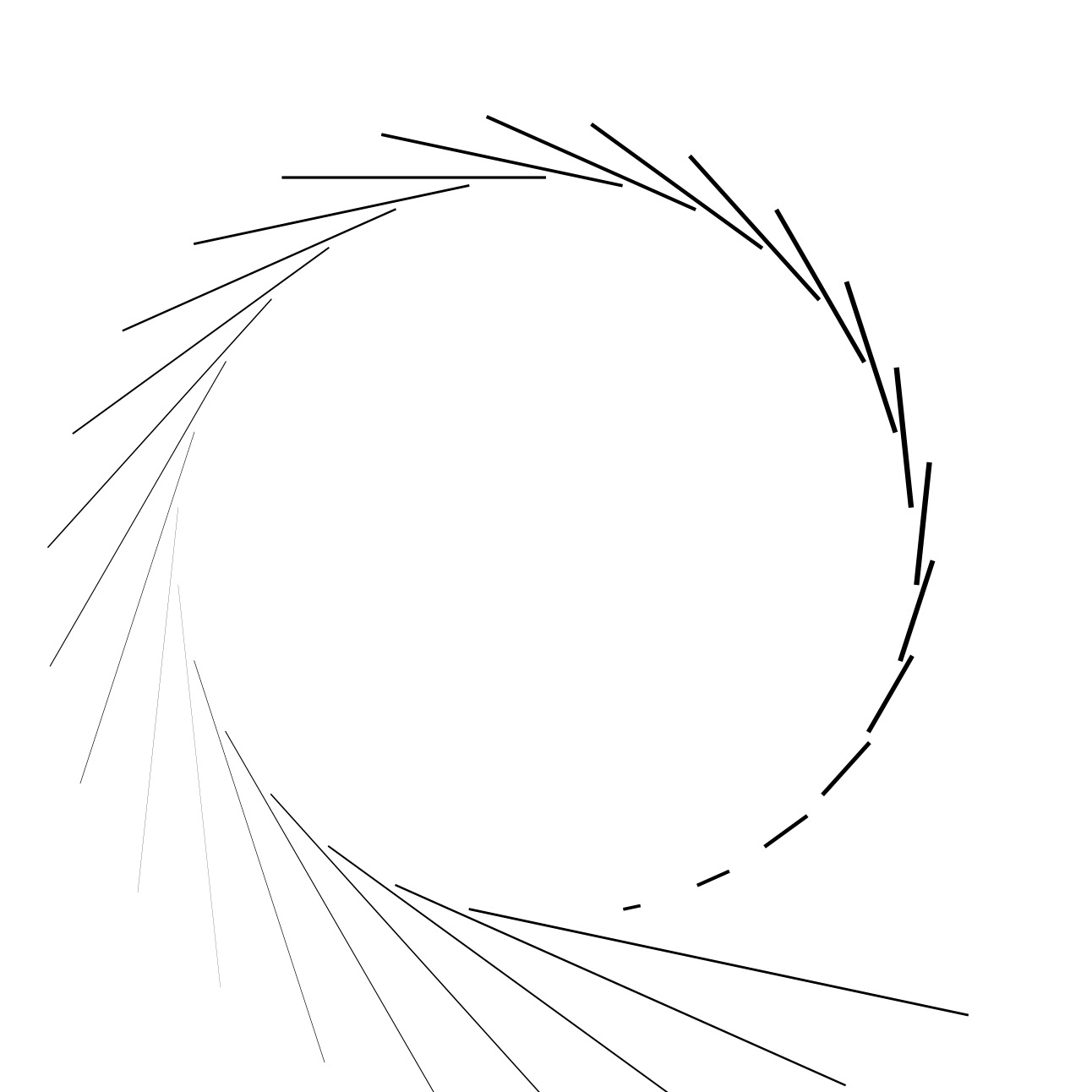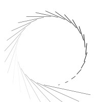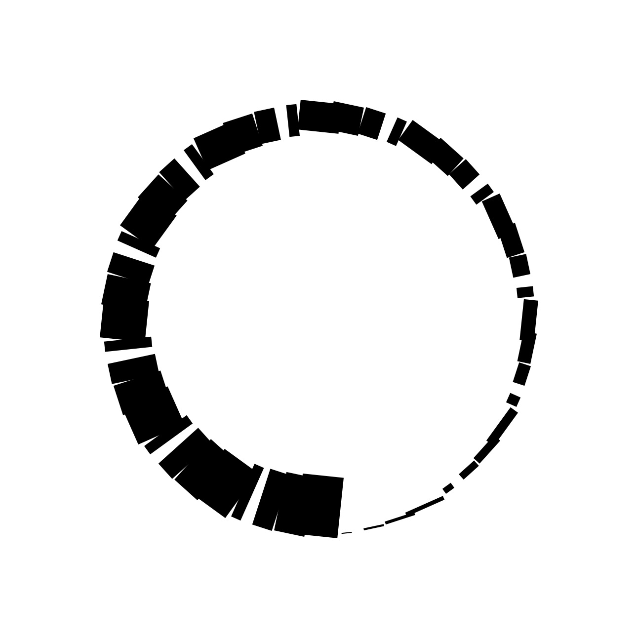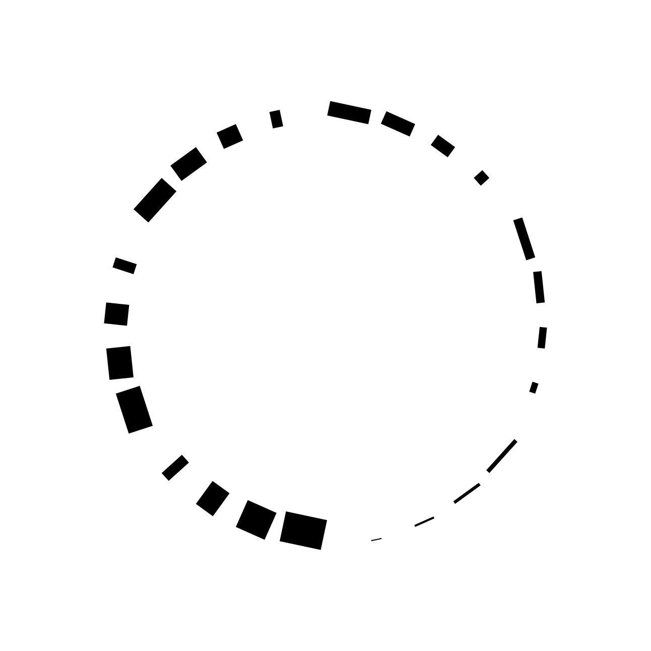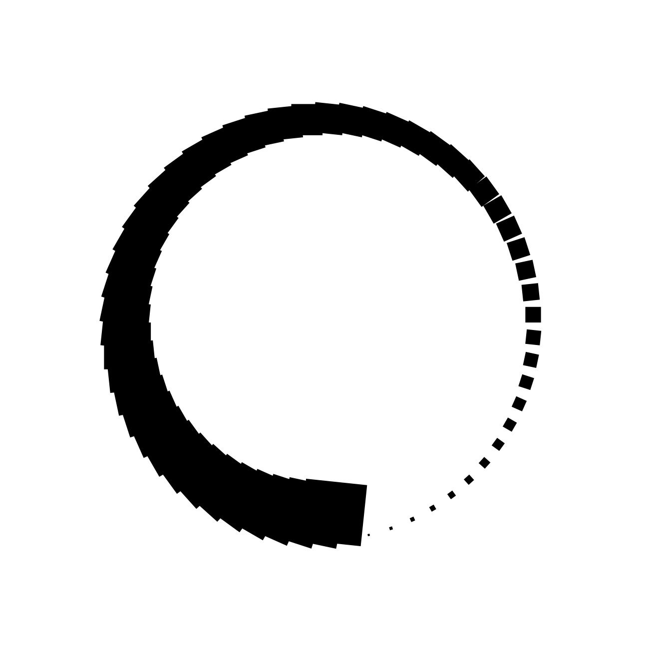 Using the same core algorithm – objects distributed around a centre point – different rhythms and patterns emerge by altering the size and shape of those objects. shorturl: http://daweso.me/WlUm6a