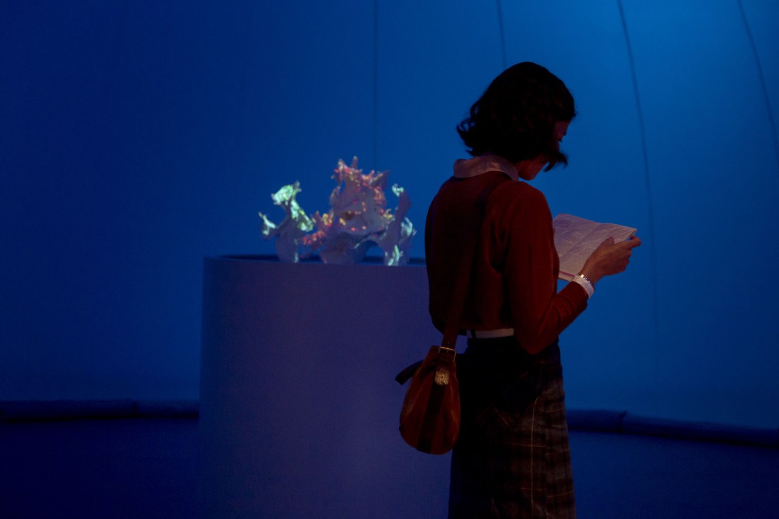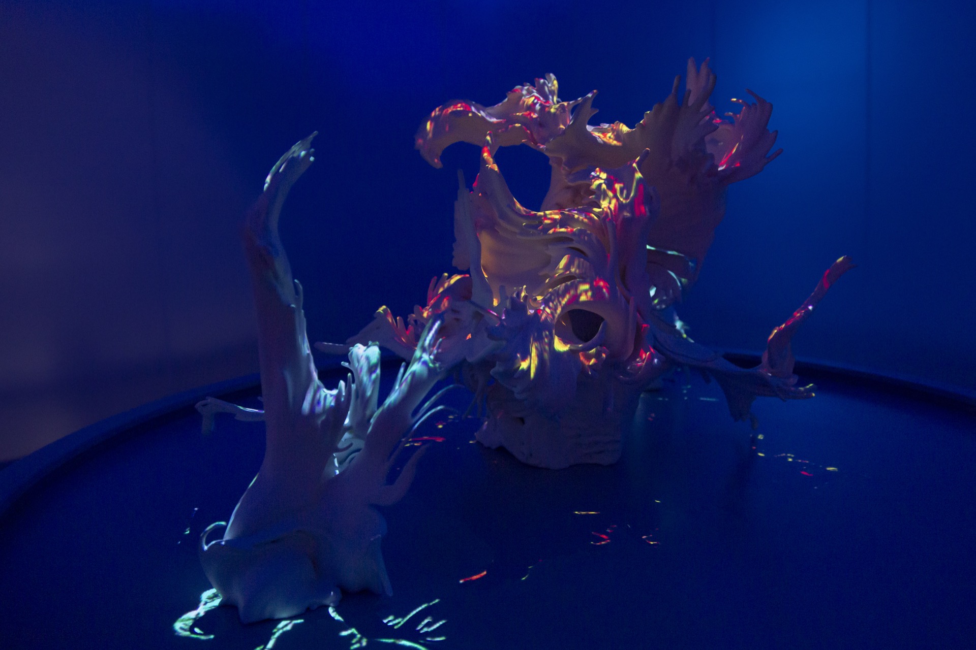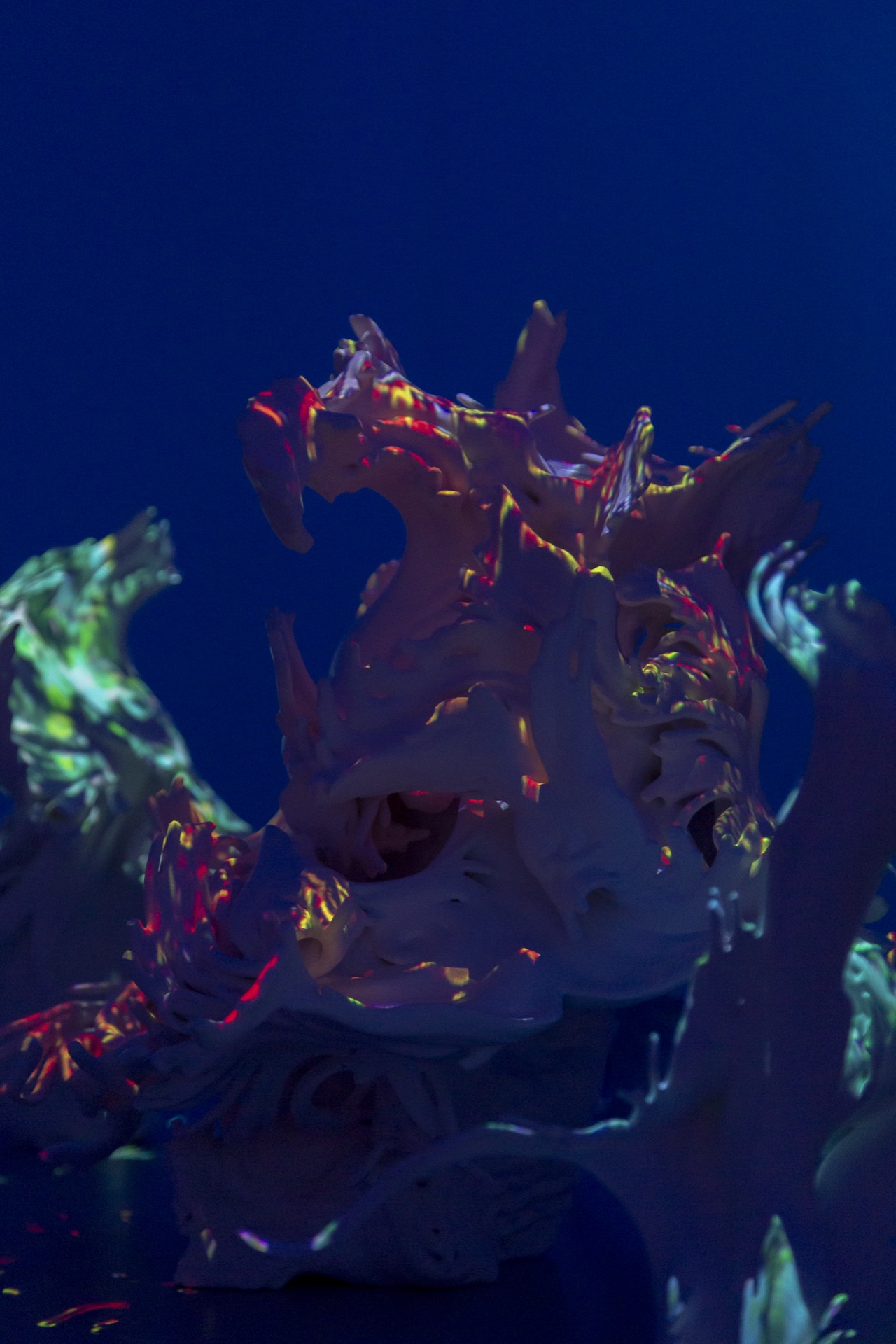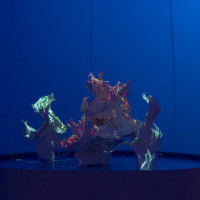 Using official passenger data from Barcelona airport, Passengers: BCN reveals the causal effect of the COVID pandemic from 2019 – 2021 realised as physical data-driven sculptures fused with digital projection.