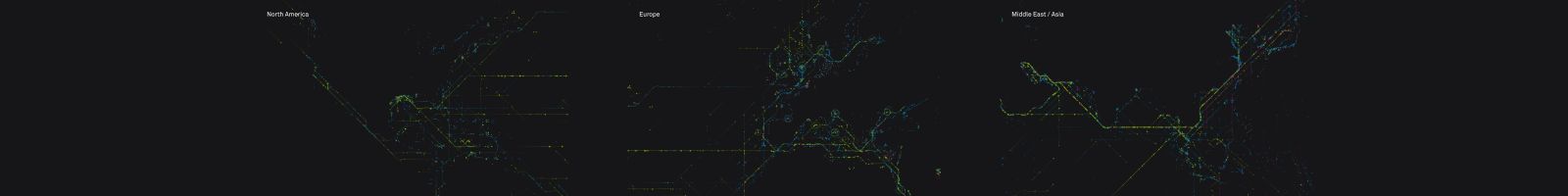 Commissioned by Brand Culture for Platts, an animated visualisation showing the journey of over 3000 ships created from five months of historical shipping data.