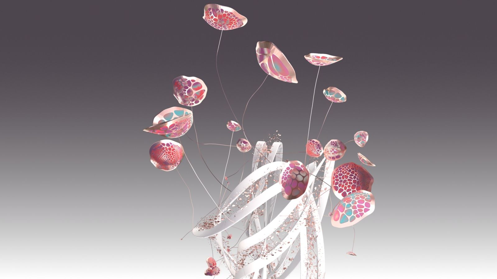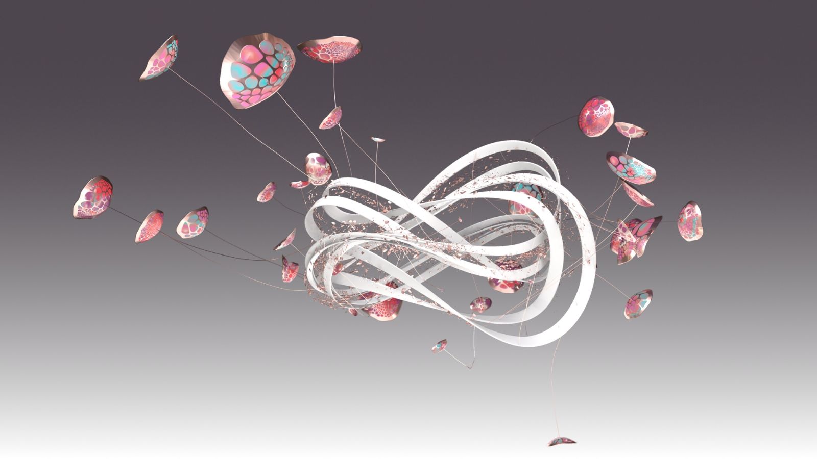 The center visualisation of the XDR system is again made generatively, employing the use of a Lissajous wave to create an architectural like object to form the core of the piece. This was very much inspired by the beautiful organic forms of Zaha Hadid.