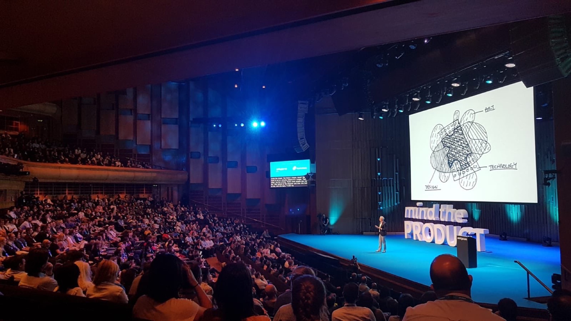 On the day of the conference I set off for the Barbican, whilst Lisa would join me later; listening to talks about product management wasn't really her thing. The place was rammed — over seventeen hundred people made this a sell-out event. I'd be last on the giant stage. For some reason I was more nervous about this talk than any other I care to remember in recent times. I just wanted it to be good and make sure everybody could take something away from it, even though product management is not my thing. As the time ticked away for me to take to the stage I tried to soak up all the atmosphere and get a feel for the audience as they watched all of the strong, well crafted, talks.