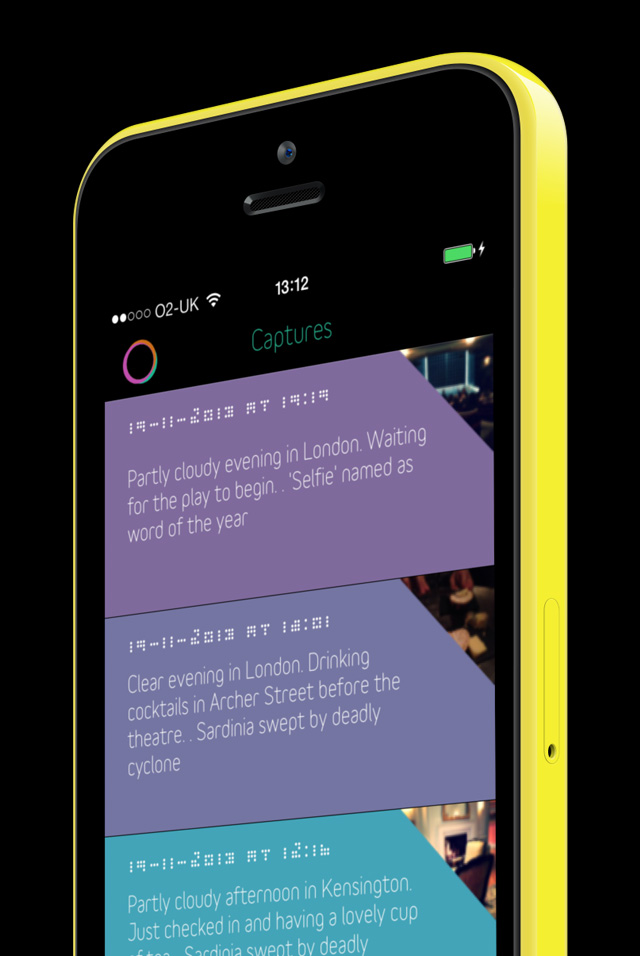 With a single tap Kennedy will capture your location, the date and time, the current weather conditions, the latest world news headlines together with what music you're listening to at the time. Add a note or a photo and then save it to the archive of captured moments.